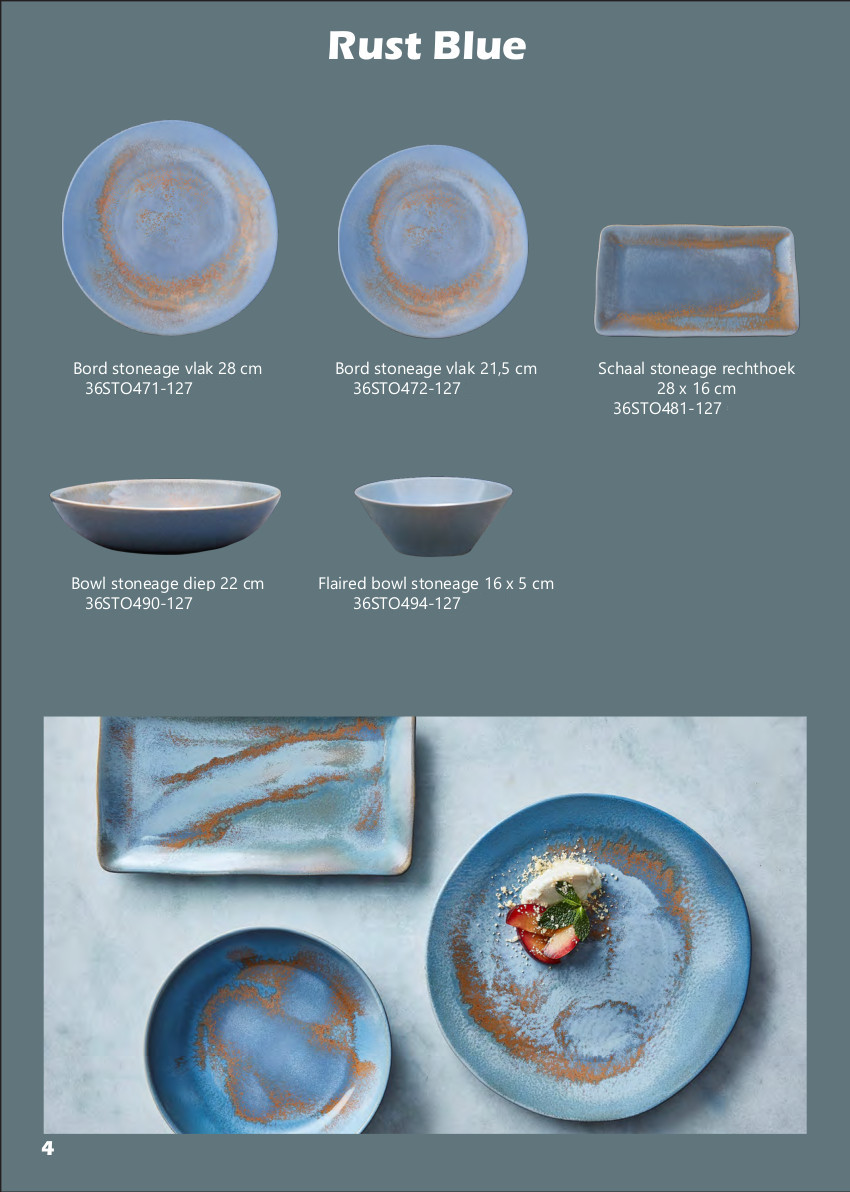 Deze serie is in het donkerblauw en lichtblauw te verkrijgen. Elk stuk servies is net even iets anders door de speciale behandeling en de net niet ronde afwerking. Dit zorgt voor een geweldige uitstraling.