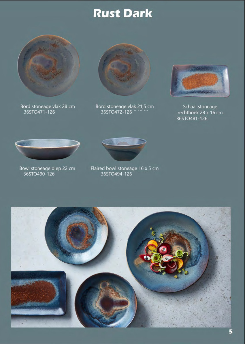 | Kleur + maatvoering | Rust Blue, Rust Dark |